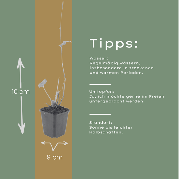 Hinweis: Pflanzen sind lebende Produkte und können von Foto und Beschreibung abweichen. Kleine Unregelmäßigkeiten können auftreten, erholen sich jedoch meist im Garten. Unsere Pflanzen sind kräftig, nachhaltig und werden direkt aus unserer Gärtnerei in recycelbaren Anzuchttöpfen geliefert.