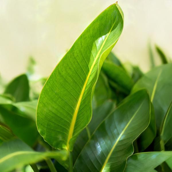 Die Blätter der Stelitzia Nicolai sind groß, lanzettlich und können bis zu 2 Meter lang werden. Sie sind glänzend und haben eine schöne, tiefgrüne Farbe, die ein Gefühl von Wohlstand und Luxus ausstrahlt. Die Pflanze hat eine tropische Ausstrahlung, die zu einer entspannten, ruhigen Atmosphäre im Haus beiträgt. Es ist, als würde man ein Stück der Tropen ins Haus holen, was das Gefühl vermittelt, sich in einer anderen Umgebung zu befinden.